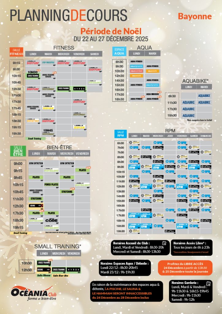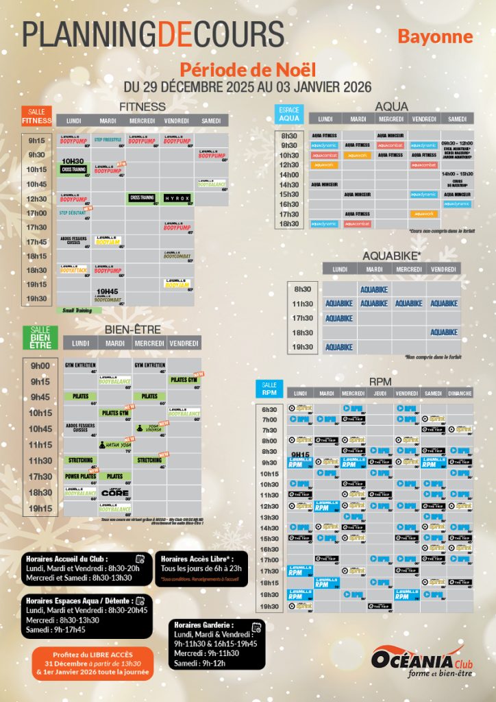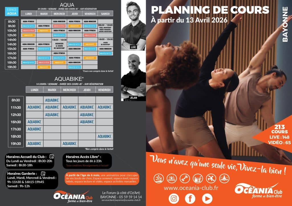 Océania Club, c’est aussi un accès libre 7j/7 de 6h à 23h, un planning proposant plus de 130 cours collectifs/semaine avec des coachs professionnels régulièrement formés afin de vous garantir la meilleure prestation.
