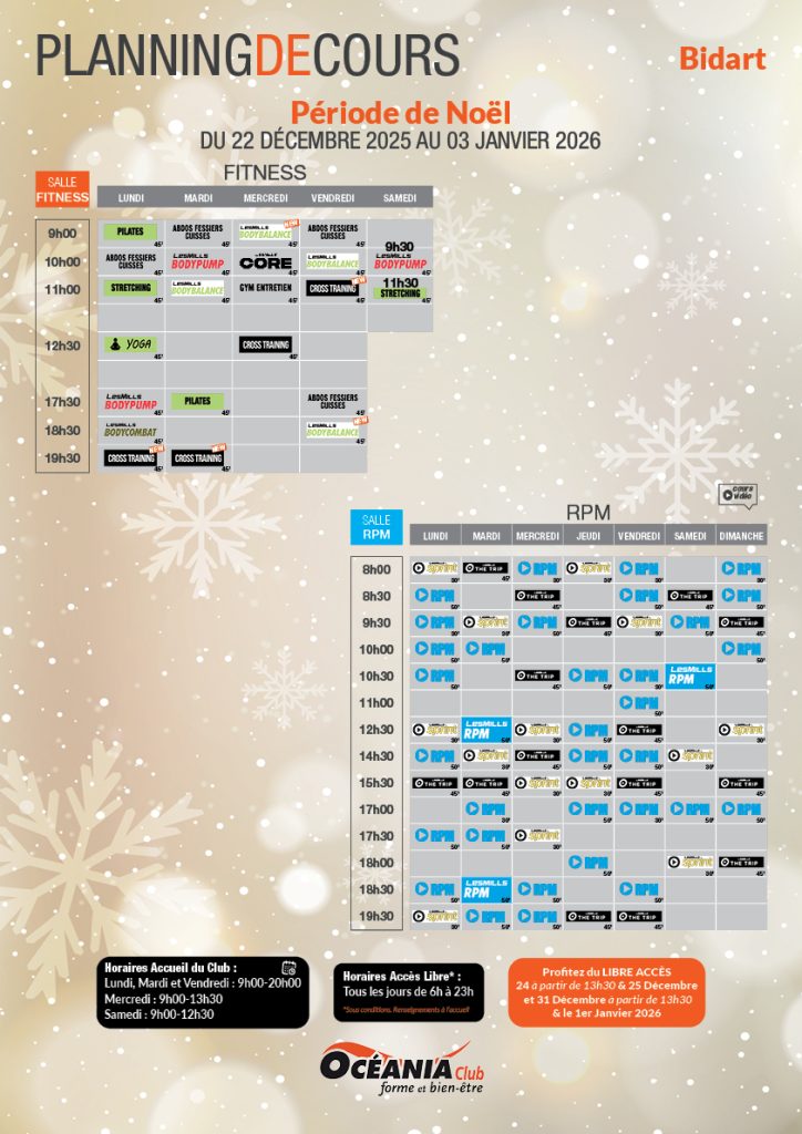 Océania Club, c’est aussi un accès libre 7j/7 de 6h à 23h, un planning proposant 107 cours/semaine avec des coachs professionnels régulièrement formés afin de vous garantir la meilleure prestation.