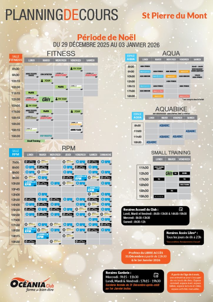 Océania Club, c’est un univers complet avec un accès libre 7j/7 de 6h à 23h, un planning proposant plus de 90 cours collectifs/semaine avec des coachs professionnels régulièrement formés afin de vous garantir la meilleure prestation.